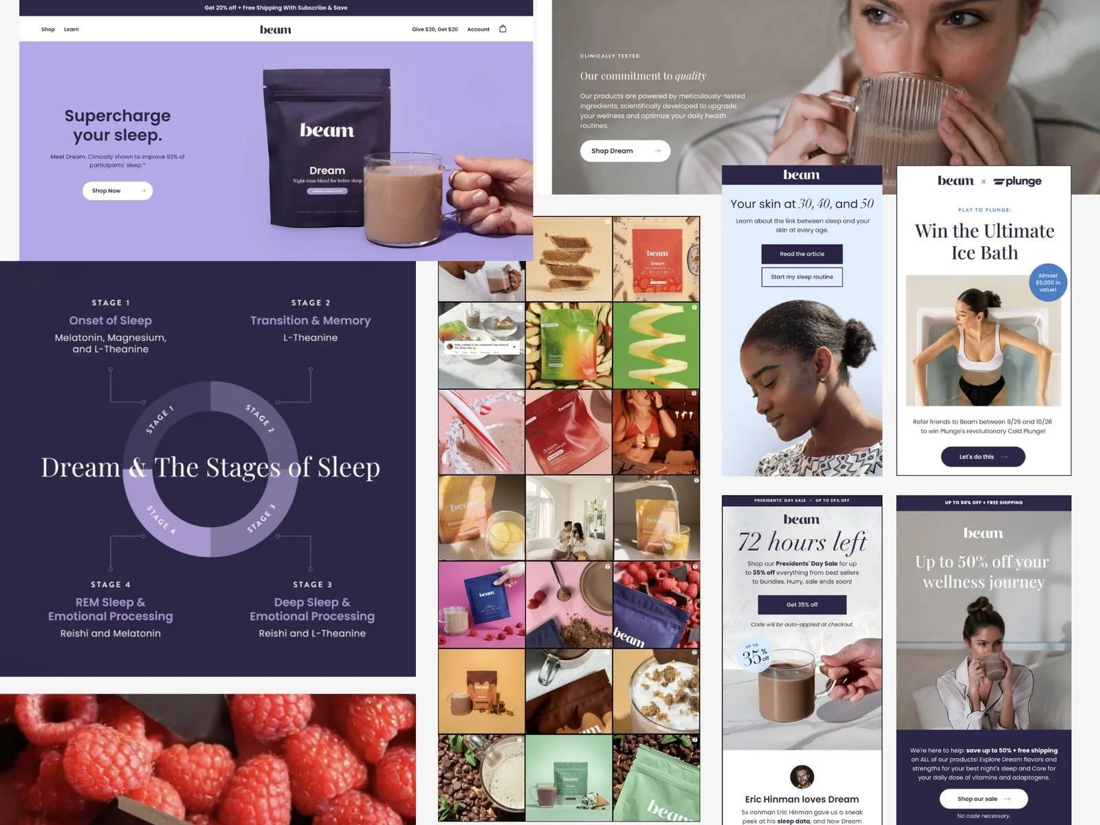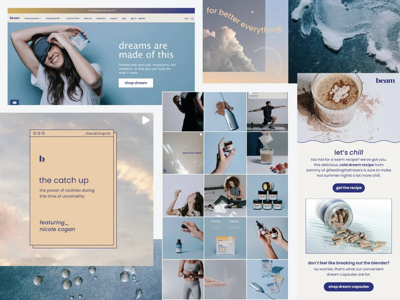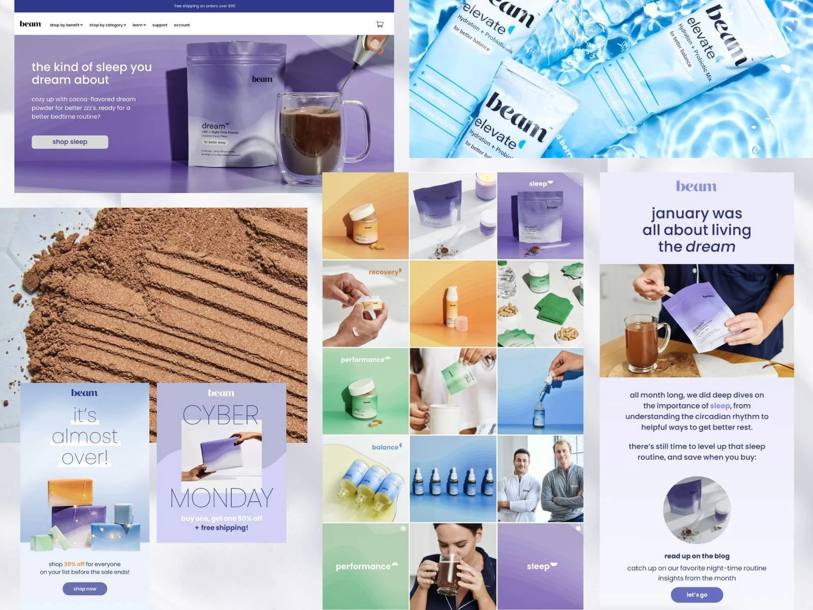 Beam is a DTC wellness brand “revolutionizing your rituals, from day to night.” –Brand Team, 2022. Below is a sampling of my impact as Art Director, Sr. Director of Brand, and VP of Brand.
